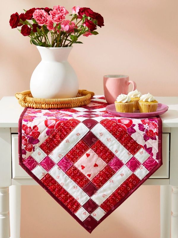 Chase away the winter blues and stitch up something sweet! This charming table runner is perfect for Valentine’s Day, but it also shines in St. Patrick’s Day, patriotic, fall, Christmas, or your favorite color palette. Make it once… or make one for every season!